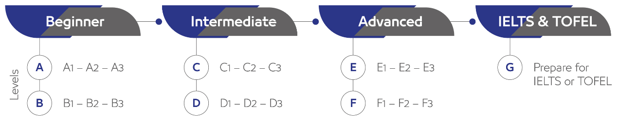 Capstone Learning offers 18 English levels for students ranging from beginners to advanced. Our course is aligned with the Common European Framework of Reference for Languages (CEFR) so you always know exactly where you are based on internationally recognized standards. The main CEFR levels are A1, A2, B1, B2, C1 and C2. They evaluate your English skills such as writing, listening, reading, spoken production and spoken interaction.